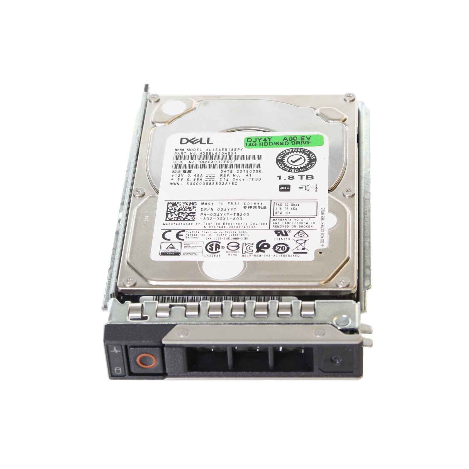 Dell Toshiba 2.5" 1.8TB 10K 12GBPS 4Kn SAS Hard Drive – DJY4Y AL15SEB18EPY
